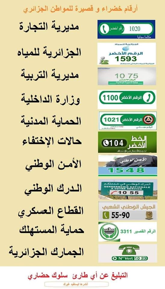أرقام الطوارئ بالجزائر أو الأرقام الهاتفية الخضراء Numeros Vert En Algerie مجلة رحالة