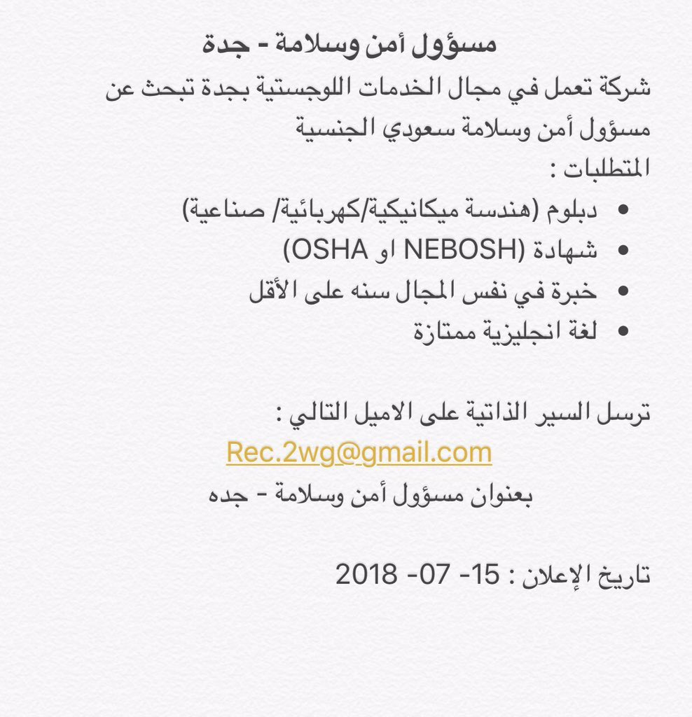 مشاركةللمواردالبشرية A Twitter وظيفة مسئول أمن وسلامة في جدة مشاركة للموارد البشرية