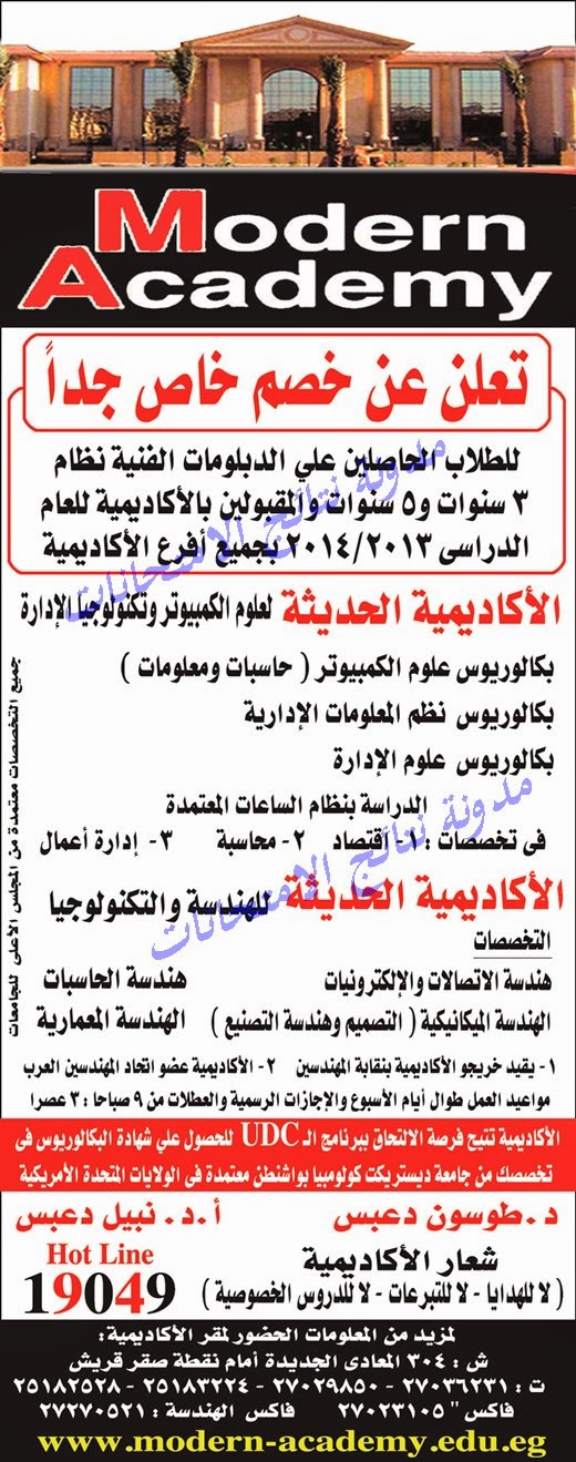 فرصة لاستكمال الدراسات العليا بجامعة Modern Academy Official Page Facebook
