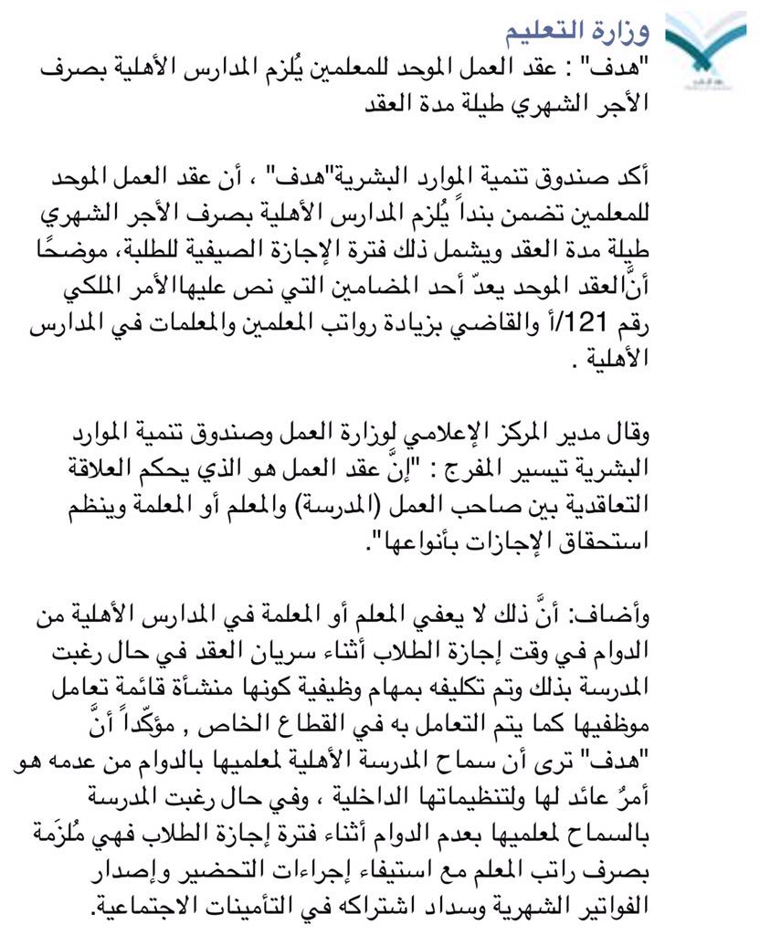 حقوق الطبع والنشر محفوظة 2014 لوزارة المالية. العمل وفي وظيفة او مشروع جيد يشغل بال كل شاب متخرج ويبحث البعض عن العمل في الدول الخليجية ومن ضمنها المملكة العربية السعودية بهذا الشأن نقدم لكم اليوم نموذج عقد عمل سعودي فالبعض يبحث هنا لذا. ويضمن العقد التزام المدرسة بتحديد موعد الإجازة السنوية للمعلمين في بداية العام الدراسي حسب مقتضيات العمل على ألا يتعارض ذلك مع أحكام المادة 61 من قانون العمل كما تلتزم المدرسة بتحويل. سواليف اتفقت لجنة التربية والتعليم النيابية ووزارتي التربية والتعليم والعمل ونقابة المعلمين على تشكيل لجنة لصياغة ووضع مقترحات حول العقد الموحد للمدارس الخاصة ووضع آليات مناسبة لتطبيقه خلال مدة أقصاها شهر.